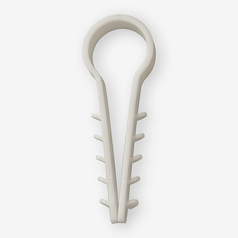 Дюбель-хомут “Ялинка» під круглий кабель Ø 16 білий Ziplex™ призначений для фіксації та утримання кабелів круглого перерізу (кручена пара, коаксіальний кабель, ВВГ та ін.) діаметром до 16 мм на стінах, стелях та інших монтажних поверхнях різного призначення з бетону або цегли. Підходить також для фіксації труби відповідного діаметру (до 16 мм) та ваги. Конструкція дюбеля ялинки дозволяє закріпити кабель, не користуючись шурупами або саморізами під час проведення електромонтажних робіт з прокладання проводки у відкритий спосіб.