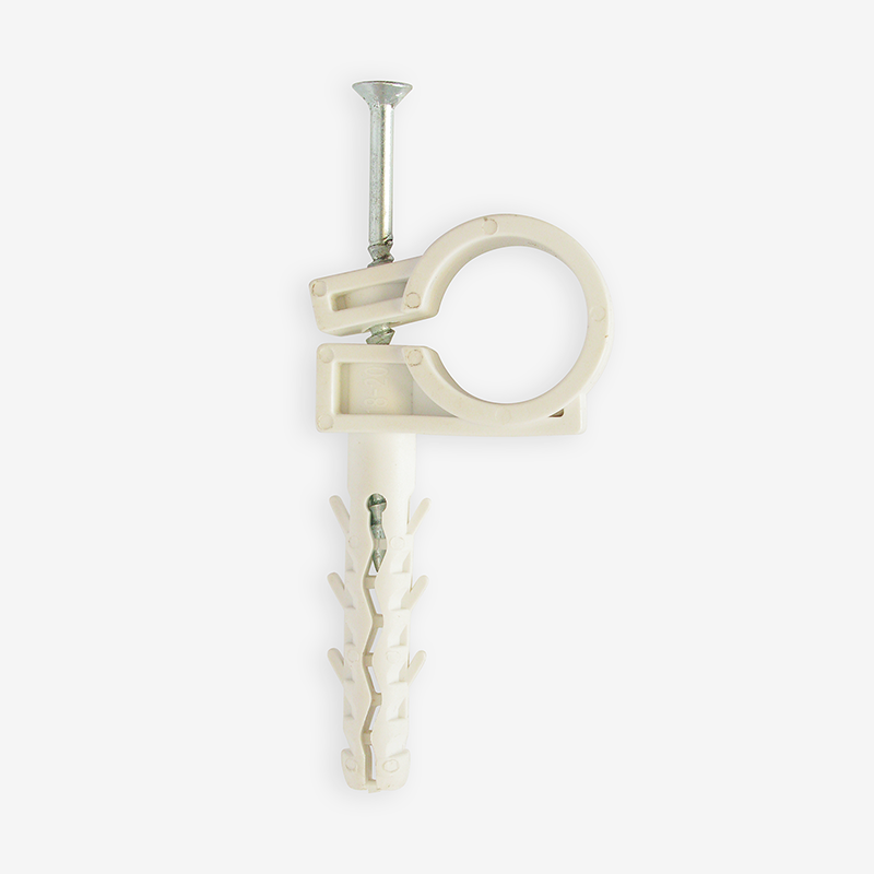 Обойма для труб і кабелю Ø18-20 з ударним шурупом Ziplex™ — це пластикове забивне кріплення, виготовлене з поліпропілену PP A4. Зносостійкий, підходить для експлуатування поза приміщенням завдяки стійкості до перепадів температур. Не має стійкості до руйнівної дії UV випромінювання. Використовується для працювання з трубами, кабелем та іншими об’єктами із зовнішнім діаметром щонайбільше 20 мм. Дюбель має стопорну частину, посилену додатковими парами вусів, завдяки чому утворюється міцне зчеплення всередині матеріалу поверхні та зменшується можливість виривання елементу, що забезпечує надійність фіксування. Через особливості конструкції, за потреби замінити трубу або кабель, необхідно спочатку повністю демонтувати обойму.
