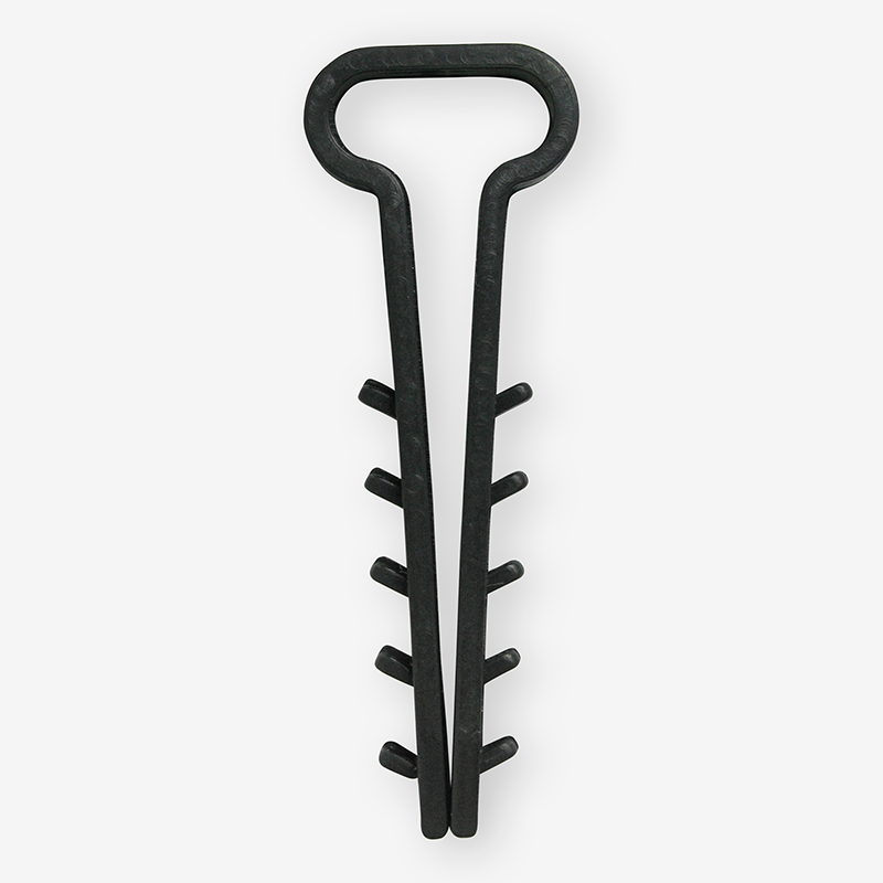Дюбель-хомут «Ялинка» під плоский кабель 10x5 чорний Ziplex™ — це вид пластикового кабельного кріплення, специфічного у застосуванні. Використовують у якості витратного кріпильного матеріалу під час протягування проводки (іноді тимчасової) у відкритий спосіб. Підходить для фіксації плоского кабелю або дроту шириною до 10 мм на цегляних та бетонних монтажних поверхнях. Функціонально ялинка складається з двох частин — фіксувальної та закладної, але являє собою суцільний виріб, що одночасно забезпечує міцну фіксацію кріплення всередині матеріалу та надійне утримання кабелю всередині петлі. Для монтування спеціального інструменту та додаткових кріпильних елементів не потрібно. Продукується з морозостійкого полімеру — поліпропілену PP A4. Поліпропілен цієї марки надає виробу з нього стійкість до появи втомних тріщин (зносостійкість) і до впливу низьких температур. За потреби замінити кабель, демонтажні роботи труднощів не викликають.
