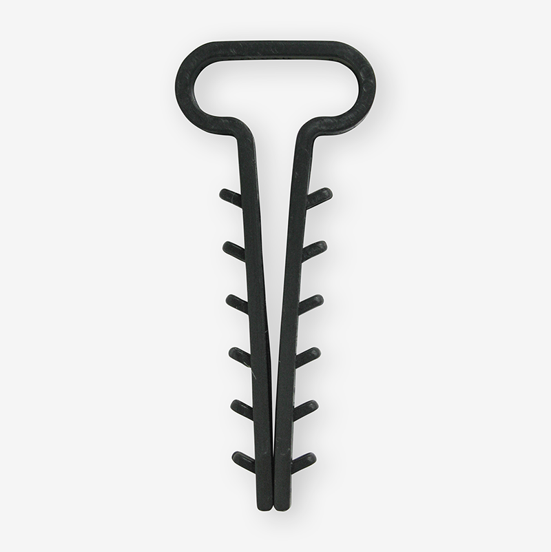 Дюбель-хомут “Ялинка» під плоский кабель 12x5 чорний Ziplex™ продукується зі зносостійкого та стійкого до впливу низьких температур полімеру поліпропілену PP A4 та використовується для робіт з протягування проводки по поверхнях стін та стель. Підходить для фіксації на робочу поверхню з цегли або бетону плоского кабелю або дроту шириною до 12 мм.