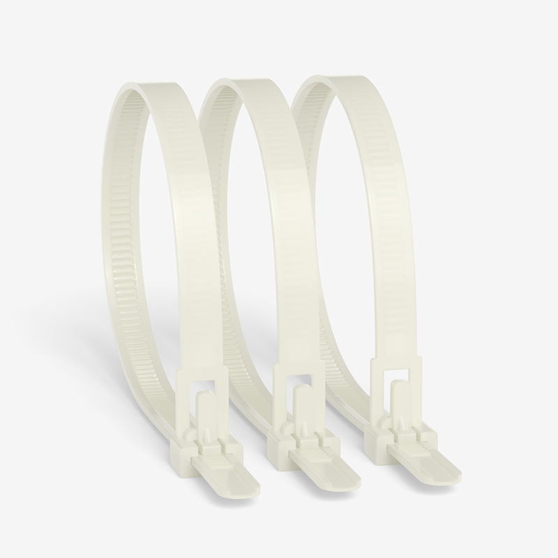 Стяжка багаторазова 8х250 біла Ziplex™ виготовляється з поліаміду PP 6.6 або нейлону, високоміцного електроізоляційного та стійкого до експлуатації при високих температурах матеріалу. Виріб підходить для швидкого монтажу, в тому числі тимчасового, та демонтажу джгутів кабелів, невеликих труб та різних конструкцій.