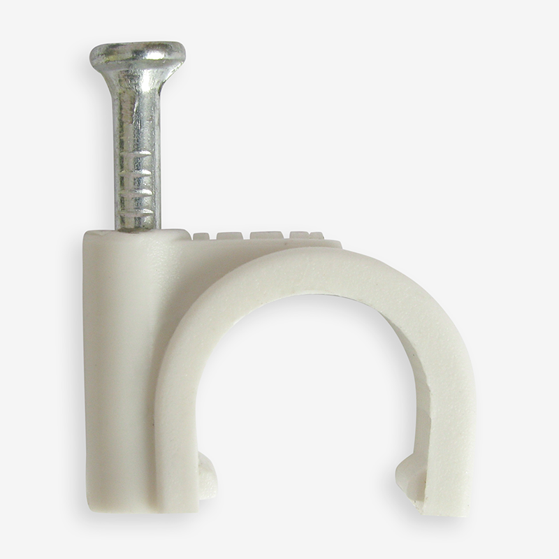 Скоба з цвяхом Ø 10 мм біла для круглого кабелю Ziplex™ — це кріпильна пара, що її використовують для прокладання електромереж, телекомунікаційних, охоронних систем та систем відеоспостереження, приєднання приладів та обладнання у відкритий спосіб всередині та поза приміщеннями різного призначення. Не потребує професійних навичок та спеціального комплекту інструментів для монтажу і демонтажу. Є забивним кріпленням і дозволяє кріпити не дерев’яні та інші щільні поверхні кабелі круглого перерізу діаметром до 10 мм.