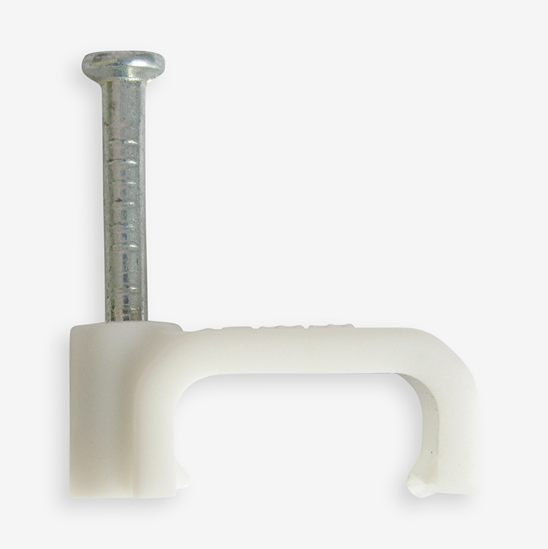 Скоба з цвяхом 12x5 мм біла для плоского кабелю Ziplex™ використовується для швидкого забивного монтажу кабелю плоского перерізу шириною до 12 мм. На дерев’яні, гіпсолітові, обтиньковані, обличкувальні та ізоляційні поверхні у відкритий спосіб. Не призначена для кріплення на бетон, цеглу та металеві поверхні. Кріпильний комплект складається з пластикової скоби-гніздечка прямокутної форми, виробленої з полімеру поліпропілену PP A4 та цвяха, що його виготовлено з марочної сталі з цинковим покриттям. Полімер є морозостійким матеріалом, тому виріб з нього може бути експлуатовано за досить низьких температур. Цвях не підлягає руйнуванню іржею.