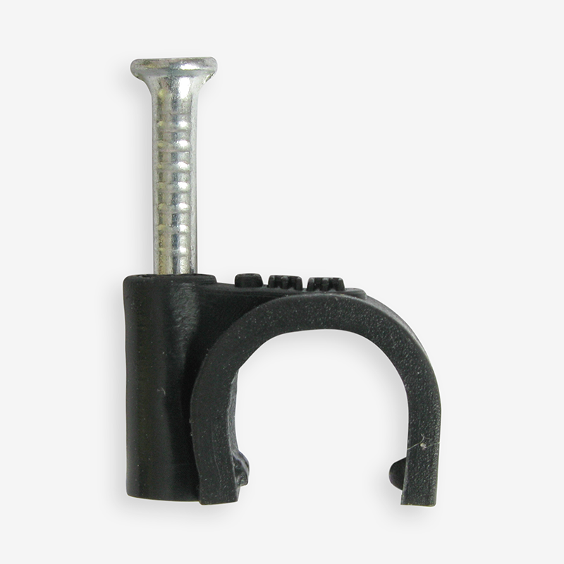 Скоба з цвяхом Ø 7 мм чорна для круглого кабелю Ziplex™ вироблена з поліпропілену та марочної сталі. Кріплення є стійким до вібраційних навантажень, низьких температур та руйнуючої дії деяких хімічних реагентів, зносостійкий. Поцинкований цвях не підлягає корозії.