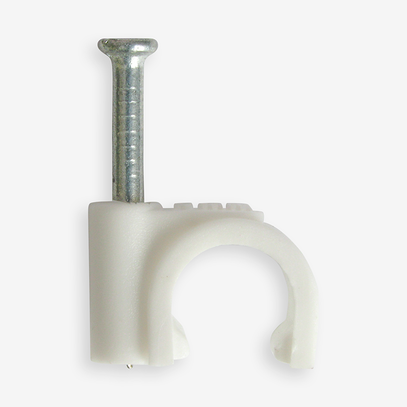 Скоба з цвяхом Ø 7 мм біла для круглого кабелю Ziplex™ підходить для фіксування та утримання на дерев’яних, гіпсолитових, обтинькованих поверхнях кабелю круглого перерізу діаметром до 7 мм різноманітного призначення: пожежного, охоронного, коаксіального кабелю і т.д. Використовується для прокладання електромереж, телекомунікаційних систем та систем відеоспостереження, а також для приєднання різних приладів. Не потребує фахових навичок та спеціальних інструментів для проведення монтажних робіт. Легко монтується та демонтується, не пошкоджуючи стіни та цілісність інтер’єру приміщень. Конструкція виробу забезпечує збереженість ізоляції провідника, а матеріали, з яких він вироблений — поліпропілен та сталь — його довгий експлуатаційний термін.