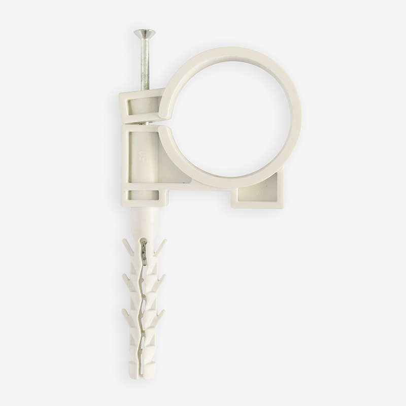 Обойма для труб і кабелю Ø50 з ударним шурупом Ziplex™ вироблена зі зносостійкого та стійкого до низьких температур та вібраційних навантажень поліпропілену PP A4. Складається з кільцевого фіксуючого елемента та розпірного дюбеля з металевим ударним шурупом. Має роз’ємну конструкцію та дюбель, що є замком-фіксатором, що означає повний демонтаж виробу за потреби замінити трубу або кабель. Використовується для фіксації та утримання металорукава, поліетиленових та ПВХ труб, кабелю або будь-яких інших об’єктів круглої форми, діаметр яких не перевищує 50 мм, на бетонних та цегляних поверхнях.