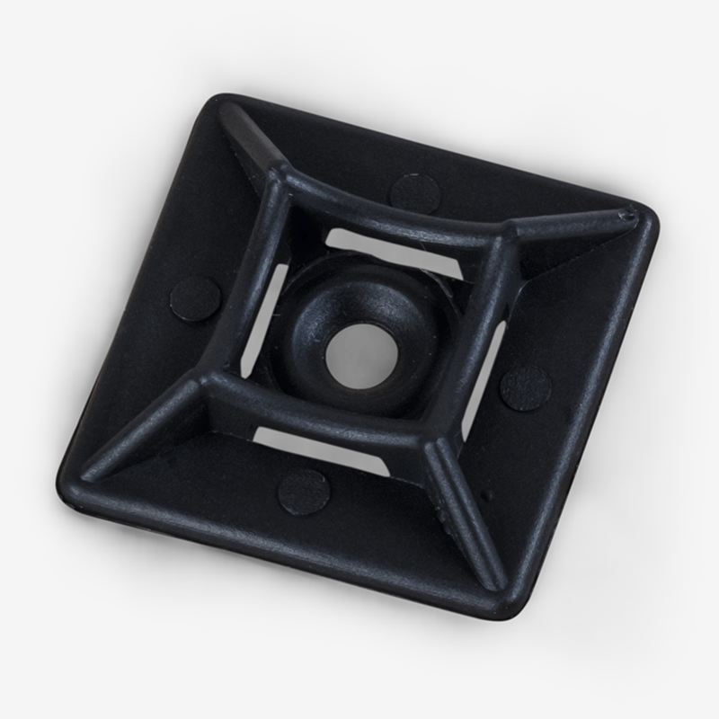 Клейкий майданчик для стяжки 29x29 чорний використовують для створення розбірного кріплення. Він вироблений з морозостійкого полімеру поліпропілену PP A4, є стійким до впливу низьких температур та вібраційних навантажень. Підходить для використання стяжки шириною до 8 мм і є посиленою модифікацією звичайного клейкого монтажного майданчика: забезпечує більш надійну фіксацію за рахунок можливості використання додаткових елементів кріплення. Можливе формування як однієї, так і двох робочих петель.